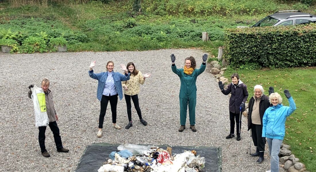 Vi går i små grupper med god afstand og har masser af sprit og frisk luft! Danmark Naturfredningsforenings lokalafdeling i Gribskov har sørget for handsker, gribetænger og poser.
