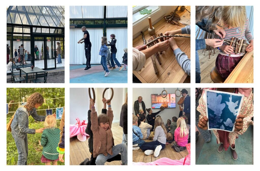 Børn og familier blev introduceret til udstillingen DRONNINGENS KLØFT, drak te med birkedronningen i haven og byggede deres egne panfløjter til to åbne og to inviterede familiedage på Munkeruphus i foråret 2025. I efterårsferien introducerede dansekompagniet Next Zone børn og unge for forskellige genrer af streetdance.