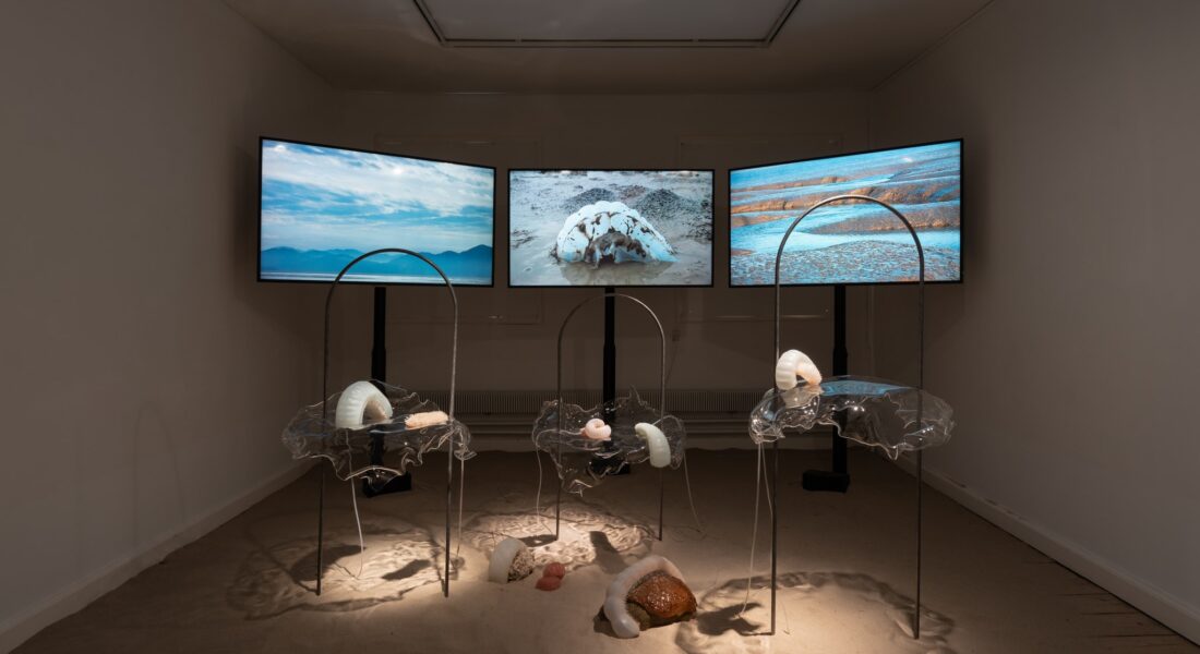 Sidste chance for at få en omvisning i Studio ThinkingHands udstilling Entangled Encounters. Denne søndag er det Munkeruphus’ kunstneriske leder, Line Kjær, som fortæller om den dansk-australske duo Studio ThinkingHand og deres fascinerende univers og sanselige værker skabt i samskabelse med naturen.