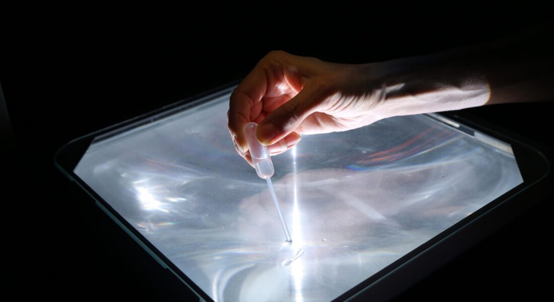 Vi mødes på gårdspladsen foran Munkeruphus kl. 16.15, hvorefter vi går langs vandet til en gammel garage i Munkerup Park, hvor dagens performance foregår. Her følger vi kunstneren i færd med at skrive uddrag fra forskellig kildemateriale som poesi, drømme og filosofiske tekster i form af sætninger på glas, som kun er genkendelige et øjeblik før de opløses og krystalliserer…