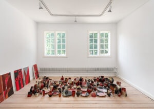 Installationsbillede fra Mette Winckelmanns soloudstilling Flags of Freedom på Munkeruphus. Foto: David Stjernholm